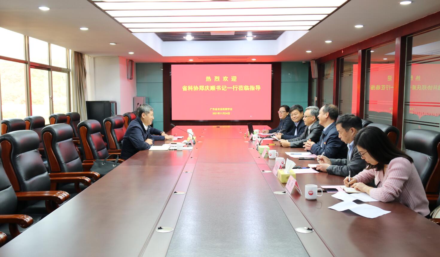 11月24日下午,省365娱乐_bat365在线登录_sportcar365党组书记、专职副主席郑庆顺到省农业机械学会,就深入学习宣传贯彻党的十九届六中全会精神和加强学会党建工作进行调研。省农机学会党支部书记、理事长牛宝俊,学会支部委员、省现代农业装备研究所书记张汉月,学会秘书长孟祥宝等学会党员参加活动。