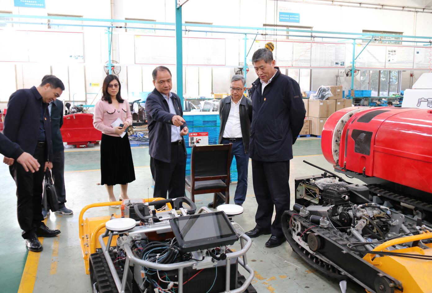 郑庆顺实地调研省现代农业装备研究所南方农业装备产业技术创新中心科研中试、智能制造车间和现代农业装备实物展、多媒体展。